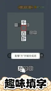 - This is a puzzle-based adventure game where you fill in scattered characters into the remaining empty cells on a 9×9 grid, using the given characters as clues. Each row and column must form a valid four-character idiom.