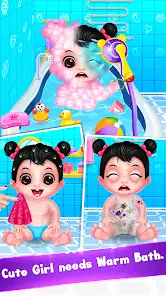 - The little girl enjoys warm bubble baths and playing with toys in the water.